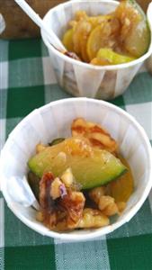 Place zucchini & yellow squash in a frying pan with butter and put foil over it to steam.  Add 1/4 cup maple syrup in with your squash.  Put 1/2 cup maple syrup in a bowl with one cup whole walnuts.  Let walnuts soak in syrup and then chop with spoon until halves and pieces. Once squash is steamed but still firm add in your walnut mixture to the pan, steam for a minute with foil on top.  Let cool a little bit and the serve as a side dish about a couple of spoonfuls each because too much can be too sweet. Read More...
